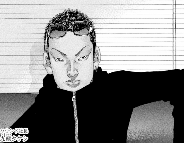 ハウンド社長にして美竹組の若中。にゃんきんハウスが灰沢にバレ、美竹組と紋舞会の紛争の火種として利用しようとする灰沢から割腹を命じられ実行。タツヒコにリカの部屋の鍵を託し死亡した。