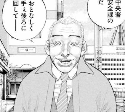 神奈川県警の横浜中央署生活安全課の警察。タキから金を受け取り、ウィザードの悪事を見逃す汚職に手を染めていたが、県警のトップが変わり、その意向により汚職が明るみに出る前に粛清の対象となり、依願退職させられる。その後、雛野一家の総長となった荒井に証拠隠滅のため、釣りに湖畔へ出掛けたところを射殺された。