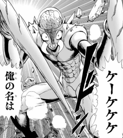 カマキリの怪人。サイタマ捕獲を狙う怪人軍団旧人類撲滅用精鋭戦力の先鋒として彼の自宅を襲撃するが、ワンパンで頭部を吹き飛ばされ死亡した。