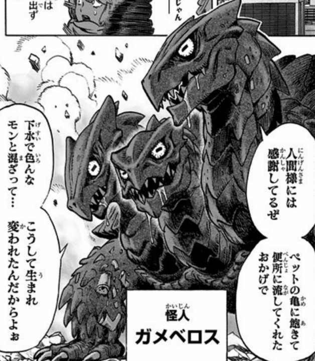 ワンパンマン ガメベロスの死亡シーン kazu 2025年10月19日 下水道の汚染物によって怪人化した亀。ヒーローコスチュームコンテスト会場を襲撃するも、出場していたサイタマにワンパンで葬られた。 【ワンパンマン】死亡キャラクター・死亡シーン一覧作中で死亡するキャラクター ワクチンマン 環境汚染を繰り返す人間を抹消するために地球の意志によって誕生した怪人。突如A市に現れて破壊... ▼LINE登録でお得情報を配信中▼