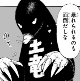 モグラの怪人。ジーナス博士の命令により獣王らとともにサイタマ捕獲に向かい、地中からサイタマを拘束していくが簡単に抜け出され、獣王が瞬殺されると地面に潜り逃走しようとするが、地面を潜ってきたサイタマに見つかり遥か上空に殴り飛ばされ死亡した。
