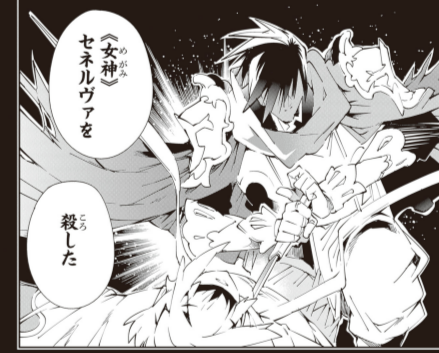女神。ザイロとともに魔王現象十一号と交戦するも、人間たちに褒められるために命をかけて戦ったことで限界に達し、魔王現象の侵食が始まっていたのでザイロに介錯された。