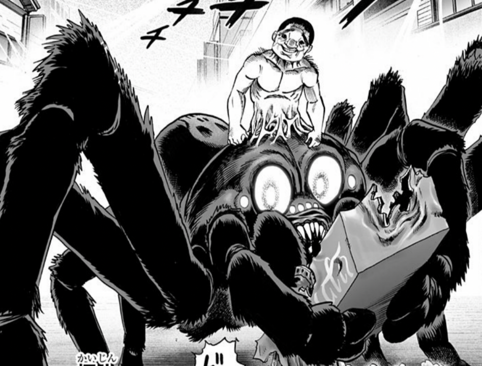 人間に蜘蛛が寄生したことで変貌した怪人。Y市に出没し、赤マフやスティンガーらと交戦し追い詰めていくが、駆けつけたバング、ジェノスの連携からのサイタマのワンパンで死亡した。