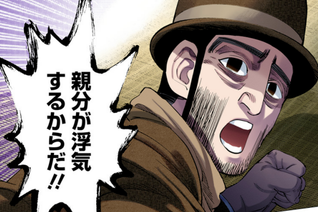 若山の子分の壺振り。ヒグマの襲撃から杉元らと共にダンのフォード・モデルTに乗り込んで脱出するも、走行中の車から落ちた若山の杖を取ろうとした際に転落。助けにきてくれた若山が撃退していくが、共に致命傷を受け、手を握り合いながら死亡。