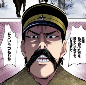 第七師団大尉。部下を損失させた鶴見中尉の元を訪れ叱責するも、鶴見中尉に指を食い千切られる。月島軍曹に射殺を命じるも、月島は鶴見の味方だったため逆に射殺された。