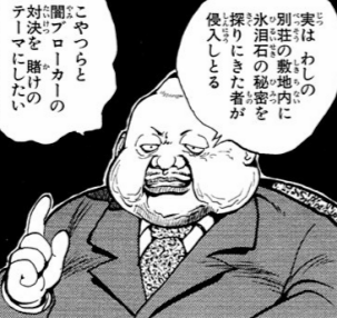 BBCの一員で宝石商。戸愚呂兄弟を雇って雪菜を奪還しにきた幽助一行を返り討ちにしようとするも、本当は左京に雇われていた戸愚呂兄弟はわざと負け、左京の「侵入者(幽助一行)が勝つほうに66兆2千億」の賭けを勝たせていく。垂金は66兆2700億という途方もない金で破滅し錯乱状態となり、左京の命を受けた戸愚呂弟に頭部を蹴り飛ばされ死亡した。