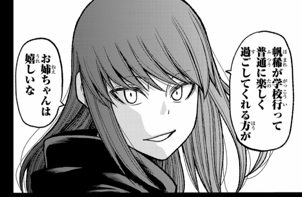 帆稀の姉。風邪で弱っていた帆稀を心配しバイトを早上がりすると、帆稀に売春を強要させようと暴行を加える父親を目の当たりにし、我慢の限界に達し背後から包丁で刺していくが、父親には敵わず滅多刺しにされ死亡した。