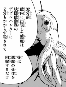 何かの悪魔。映画館に出現するも映画館勤務のデビルハンターに2分もかからず殺された。