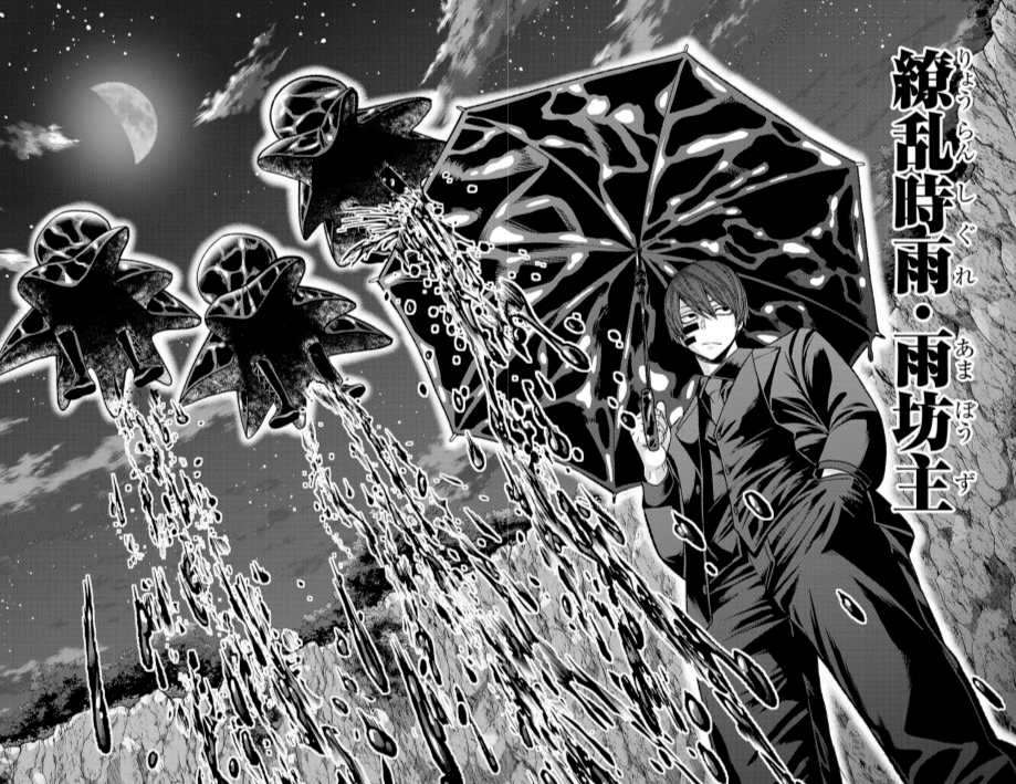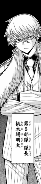 桃太郎機関華厳の滝跡地研究所第5部隊隊長。他隊長、隊員らとともに研究所に乗り込んできた無陀野と交戦。国領の能力から解放され「研究所が爆破される」という情報を聞き、早々に片を付けようとした無陀野の繚乱時雨・雨坊主で押し潰され死亡した。