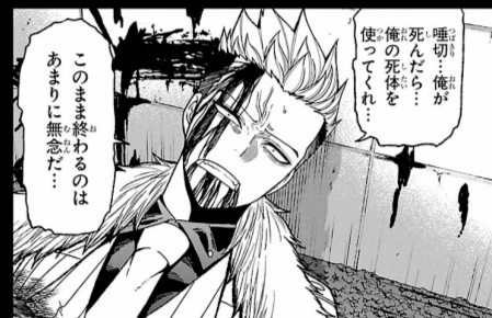 桃太郎機関員でかつての唾切の上司。家族持ちの鬼を退治しようとした際、子供の鬼が娘と重なり躊躇したことで逃してしまい、買い物に出ていた間中の家族がその場に居合わせていたため鬼に狙われ、それをかばったことが致命傷となる。死に際に「俺が死んだら俺の死体を使ってくれ」と唾切に伝え、死後は唾切の能力で操られ唾切の戦力となるも、四季との戦いで焼けていった。
