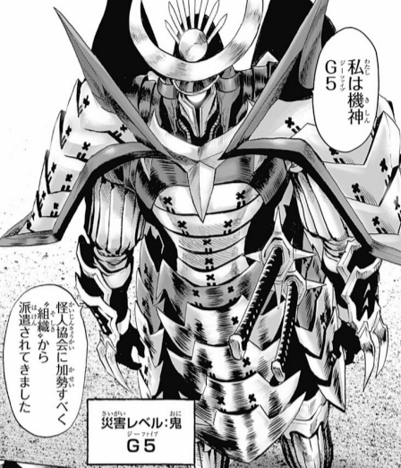 鎧武者型のロボット怪人。怪人協会アジトに乗り込んできたアトミック侍と交戦し、木っ端微塵に切り刻まるも本体だけは逃走。その後、地上に現れセキンガルの息の根を止めようとするが、駆けつけたジェノスの蹴りを浴び爆散した。