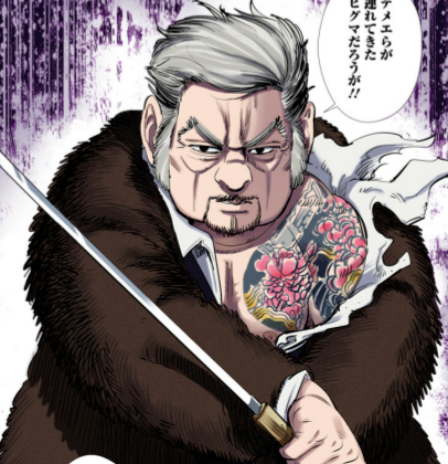 ヤクザの親分。ヒグマから逃げ延び、ダンのフォード・モデルTで杉元らの前に現れ共に逃走を図るも、落下しそうになった杖を取ろうとした際に仲沢が転落。ヒグマに襲われる仲沢を助けるため仕込み杖で挑み、致命傷を負いながらもヒグマを仕留めていく。最期は仲沢と手を握り合いながら共に死んでいった。