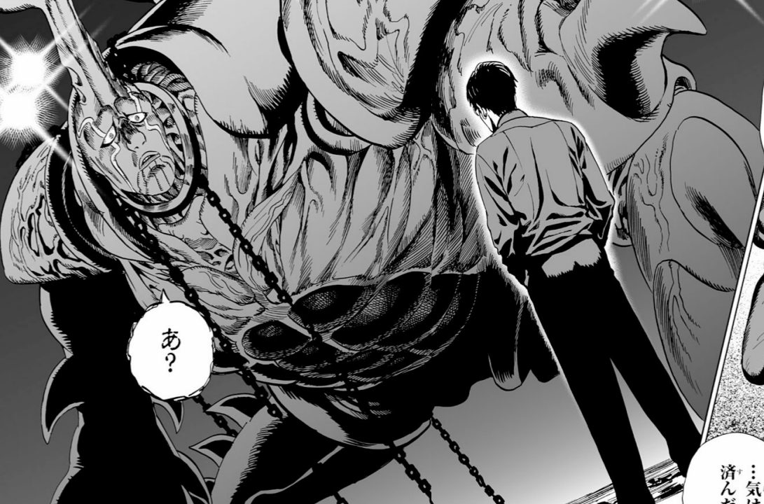 進化の家最強の戦士のカブトムシの怪人。進化の家に来たサイタマと交戦し、サイタマの殺気に戦慄し強さの秘訣を問いただすがあまりに拍子抜けする内容だったためブチギレ阿修羅モードを発動。が、今日がスーパーの特売日であることに気づいたサイタマにワンパンで粉砕された。